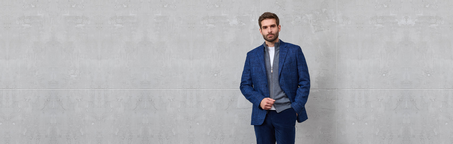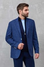 Легкий костюм из смеси шерсти, льна и шелка синий в клетку