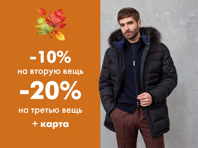 Дополнительные скидки: -10% на вторую, -20% на третью вещь в чеке + СКИДКА по карте MEUCCI