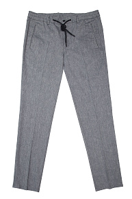 Брюки из смесового серо-синего денима с эластичным поясом и кулиской