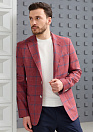 Облегченный пиджак бордовый в синюю клетку из смеси шерсти, шелка и льна. Шерсть обладает терморегулирующими свойствами, шелк добавляет легкость и яркость, у льна антибактериальные качества. Производитель ткани итальянский бренд DRAGO. Отсутствие подкладки позволяет полностью оценить качество оформления внутренних швов. Силуэт полуприталенный. Карманы: 1 нагрудный прорезной с листочкой, 2 боковых накладных, 2 внутренних кармана. 2 шлицы. Пиджак отлично сочетается с поло и футболками, а также с летними льняными или хлопковыми брюками, джинсами и шортами.