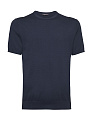 Джемпер с коротким рукавом из смеси хлопка, шелка и льна темно-синий