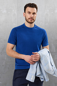 Джемпер с коротким рукавом синего цвета из хлопка Пима