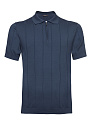 Мужской трикотажный джемпер-поло с короткими рукавами из смеси хлопка, шелка и льна. Хлопок обеспечивает отличную воздухопроницаемость и мягкость на ощупь, шелк добавляет легкий блеск, а лен обладает антисептическими свойствами. Цвет темно-синий. В дизайне использованы вертикальные полосы, визуально вытягивающие силуэт.
