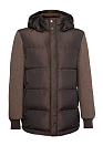 Пуховик с капюшоном из комбинации двух тканей коричневый