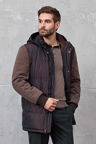 Удлиненный стеганый пуховик с капюшоном и меховой опушкой