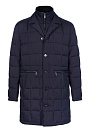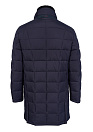 Удлиненный стеганый пуховик (пальто) в классическом стиле со съемной манишкой и меховым воротником - стильный выбор для мужчин, которые ценят комфорт и актуальные тренды. Длина по спинке: (размер 50) 95 см. Застежка, манишка, воротник: Воротник на пуховике отложной пиджачного типа, застежка на пуговицы. Манишка крепится к пуховику на молнию. Накладной воротник манишки из меха кролика крепится на молнию и пуговицы. Карманы: Четыре внешних кармана: два с клапанами на молниях (клапаны можно убрать внутрь карманов), два на магнитной застежке. Два внутренних кармана. Утеплитель: Экопух и Valtherm®. Дополнительные элементы: На стойке воротника и на клапане кармана расположены фирменные элементы в виде вышивки. Отделка из алькантары. Понизу спинки две шлицы, застегивающиеся на молнии.